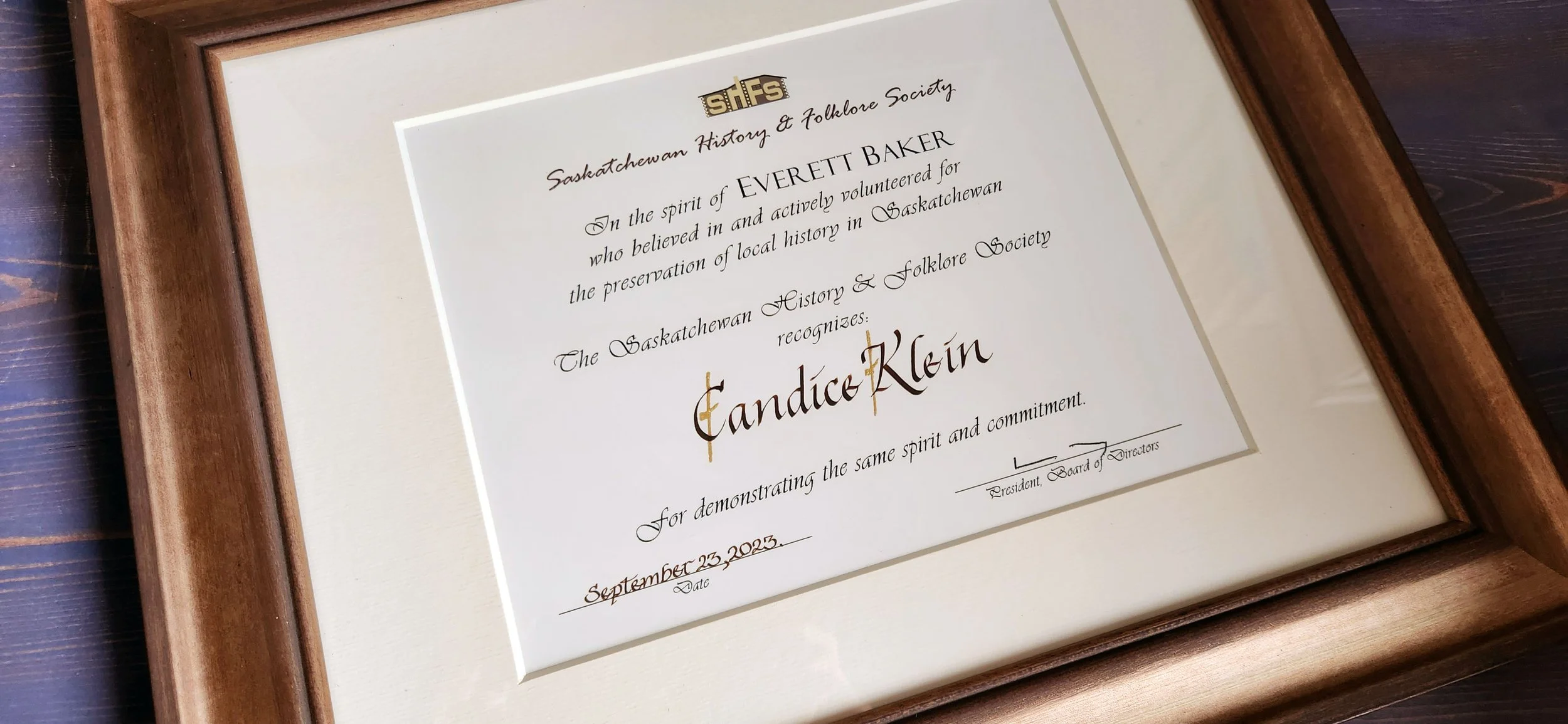 Congratulations, Candice, for going above and beyond for your community and Saskatchewan’s heritage.