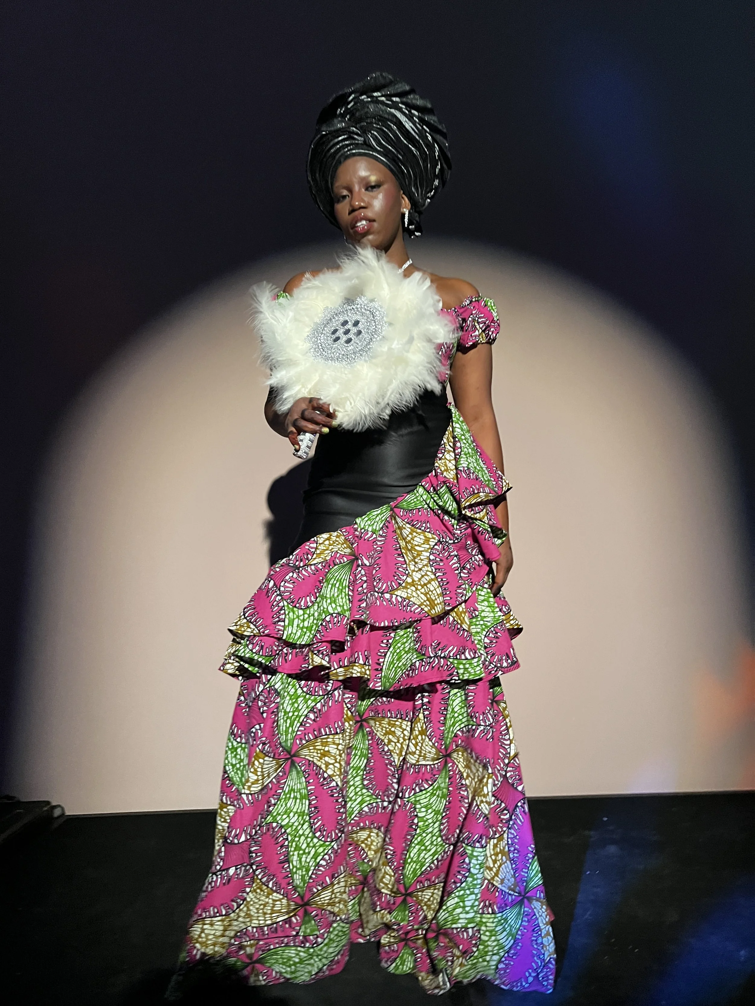But then I moved to Canada, and during 2012 to 2016, which is when I really started to be part of the Saskatoon community, and the isolation of immigrants here in Saskatoon made me miss home so much. And the only thing that I could do was wear the clothing. When I was around 19, I really started to have a consciousness for it, because instead of it being about missing home, it became a need. I needed people to know where I stand in things. Me working with African textiles and wearing African textiles and parading around in African textiles was a message, you know, to people, of saying, I don't really care about conforming anymore. I don't care about assimilating. I want to make a conscious effort to show that I am not moving towards that direction of assimilation.